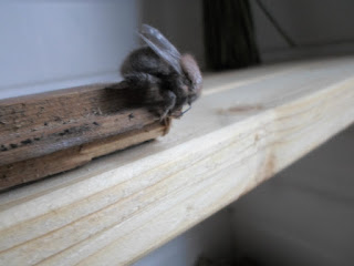 Slutligen ett flygfä, djuret är en Humla som kröp ur bastuugnen då den antändes, fattade inte alls vad det var då ljusgrå humlor är ovanliga. Då den vände och traskade in i värmen igen gjordes en hjälteinsats av mig då jag inte bara är dryg utan även om ingen tror det en som kan bry sig om en humla eller annat kryp, surre räddades.