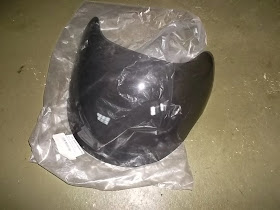 Tur som en tokig hade jag då den tidigare omtalade motorcykelskroten besöktes i jakt på ruta. Kåpan som har lagats ska enligt sägen vara en Honda RC30 avgjutning och det fanns ett nytt glas till just den modellen i en banankartong på loftet. Tyvärr tonat vilket ger lite svennevarning men är ändå mer än nöjd.
